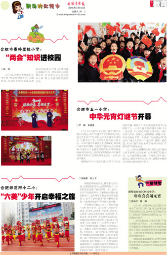 合肥市香格里拉小学:“两会”知识进校园 合肥市五一小学:中华元宵灯谜节开幕 合肥师范附小二小:“六美”少年开启幸福之旅 蚌埠市蚌山区回民小学:欢欢喜喜闹元宵