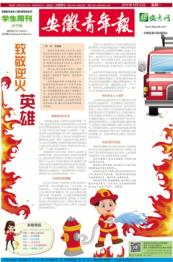 《安徽青年报·学生周刊》励志启智,开阔视野,净化心灵,陶冶情操,参与互动,集新闻性、知识性、趣味性、互动性为一体,是小学生成长的良师益友、参与互动的平台、沟通老师家长的纽带。