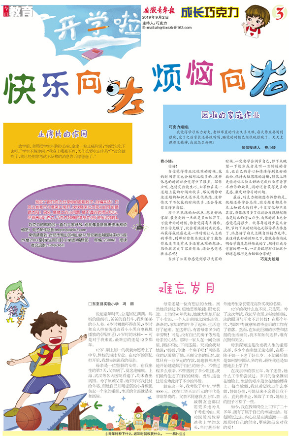 《安徽青年报·学生周刊》励志启智,开阔视野,净化心灵,陶冶情操,参与互动,集新闻性、知识性、趣味性、互动性为一体,是小学生成长的良师益友、参与互动的平台、沟通老师家长的纽带。