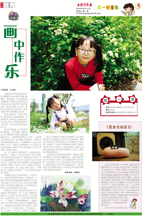 《安徽青年报·学生周刊》励志启智,开阔视野,净化心灵,陶冶情操,参与互动,集新闻性、知识性、趣味性、互动性为一体,是小学生成长的良师益友、参与互动的平台、沟通老师家长的纽带。