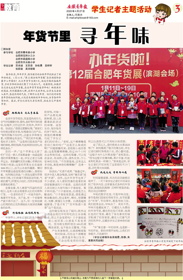 《安徽青年报·学生周刊》励志启智,开阔视野,净化心灵,陶冶情操,参与互动,集新闻性、知识性、趣味性、互动性为一体,是小学生成长的良师益友、参与互动的平台、沟通老师家长的纽带。
