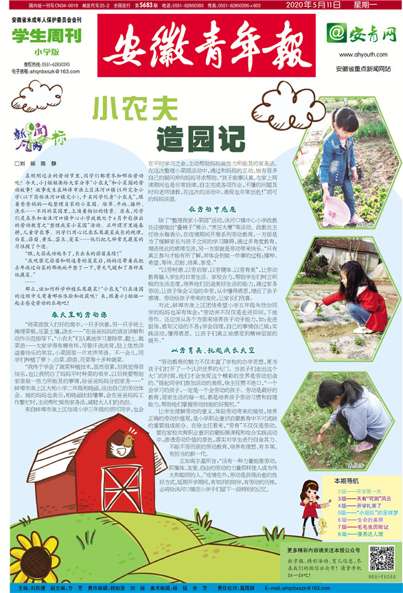 《安徽青年报·学生周刊》励志启智,开阔视野,净化心灵,陶冶情操,参与互动,集新闻性、知识性、趣味性、互动性为一体,是小学生成长的良师益友、参与互动的平台、沟通老师家长的纽带。