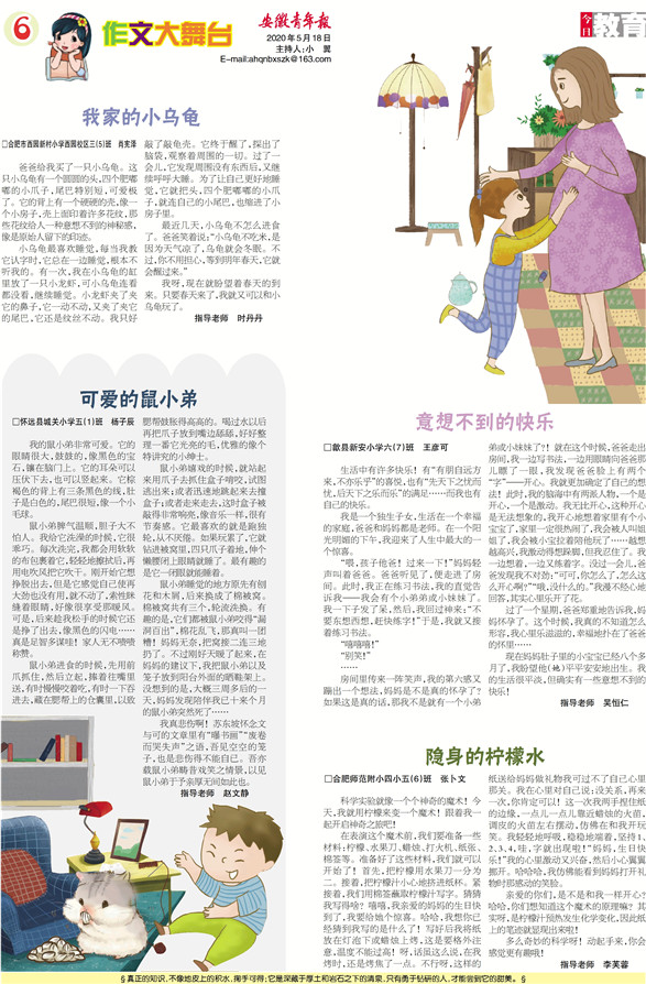《安徽青年报·学生周刊》励志启智,开阔视野,净化心灵,陶冶情操,参与互动,集新闻性、知识性、趣味性、互动性为一体,是小学生成长的良师益友、参与互动的平台、沟通老师家长的纽带。