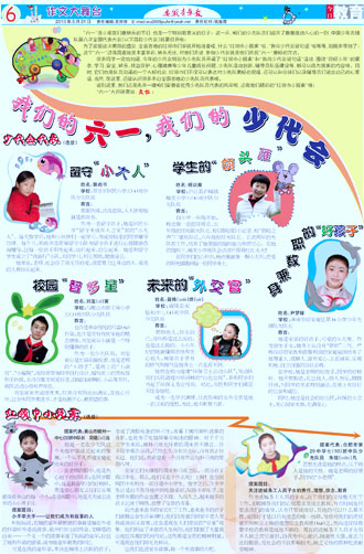 我们的六一 ,我们的少代会 少代会代表(选登)--留守“小大人” 少代会代表(选登)--学生的“领头雁” 少代会代表(选登)--校园“智多星” 少代会代表(选登)--未来的“外交官” 少代会代表(选登)--身兼数职的“好孩子” 红领巾小提案(选登)