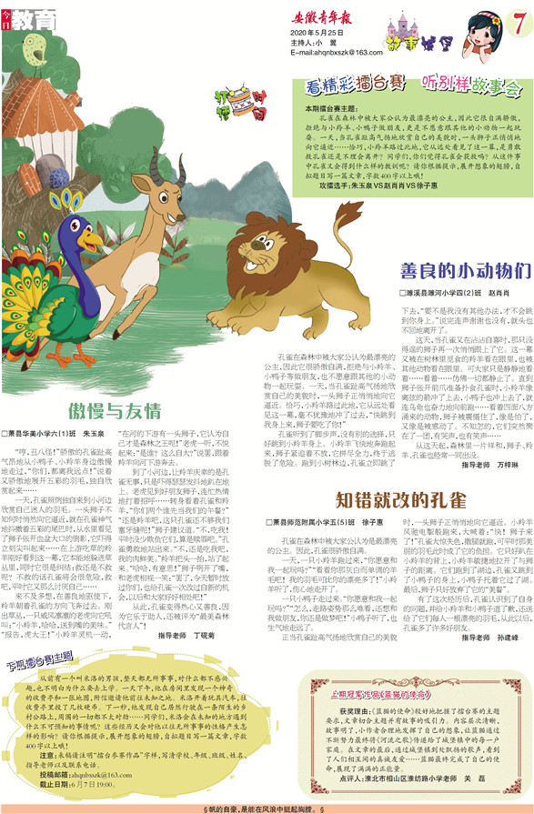 《安徽青年报·学生周刊》励志启智,开阔视野,净化心灵,陶冶情操,参与互动,集新闻性、知识性、趣味性、互动性为一体,是小学生成长的良师益友、参与互动的平台、沟通老师家长的纽带。