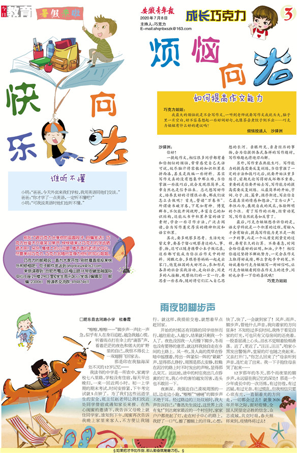 《安徽青年报·学生周刊》励志启智,开阔视野,净化心灵,陶冶情操,参与互动,集新闻性、知识性、趣味性、互动性为一体,是小学生成长的良师益友、参与互动的平台、沟通老师家长的纽带。