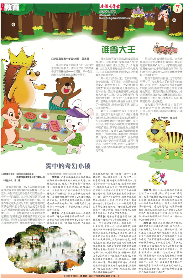 《安徽青年报·学生周刊》励志启智,开阔视野,净化心灵,陶冶情操,参与互动,集新闻性、知识性、趣味性、互动性为一体,是小学生成长的良师益友、参与互动的平台、沟通老师家长的纽带。