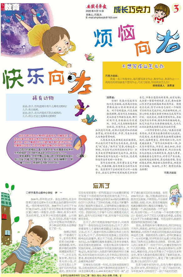 《安徽青年报·学生周刊》励志启智,开阔视野,净化心灵,陶冶情操,参与互动,集新闻性、知识性、趣味性、互动性为一体,是小学生成长的良师益友、参与互动的平台、沟通老师家长的纽带。