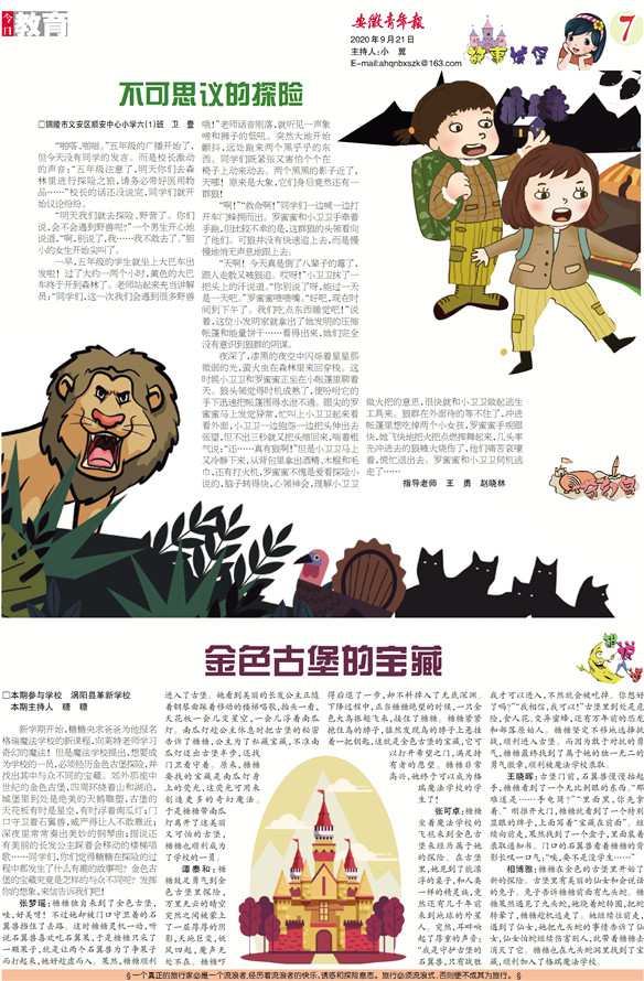 《安徽青年报·学生周刊》励志启智,开阔视野,净化心灵,陶冶情操,参与互动,集新闻性、知识性、趣味性、互动性为一体,是小学生成长的良师益友、参与互动的平台、沟通老师家长的纽带。