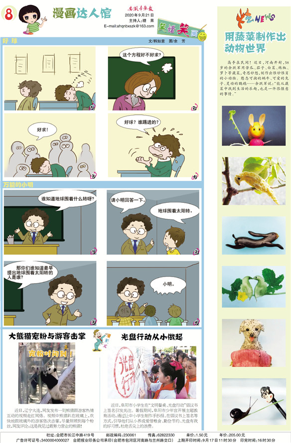 《安徽青年报·学生周刊》励志启智,开阔视野,净化心灵,陶冶情操,参与互动,集新闻性、知识性、趣味性、互动性为一体,是小学生成长的良师益友、参与互动的平台、沟通老师家长的纽带。