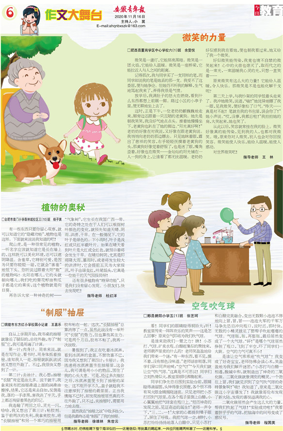 《安徽青年报·学生周刊》励志启智,开阔视野,净化心灵,陶冶情操,参与互动,集新闻性、知识性、趣味性、互动性为一体,是小学生成长的良师益友、参与互动的平台、沟通老师家长的纽带。