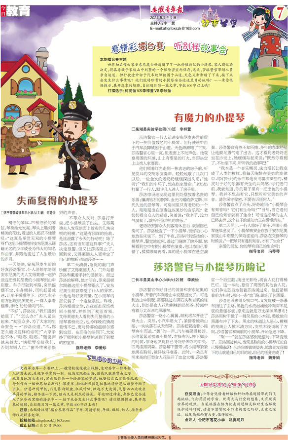 《安徽青年报·学生周刊》励志启智,开阔视野,净化心灵,陶冶情操,参与互动,集新闻性、知识性、趣味性、互动性为一体,是小学生成长的良师益友、参与互动的平台、沟通老师家长的纽带。