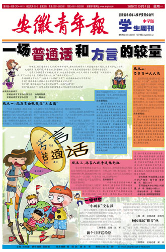 《安徽青年报·学生周刊》励志启智,开阔视野,净化心灵,陶冶情操,参与互动,集新闻性、知识性、趣味性、互动性为一体,是小学生成长的良师益友、参与互动的平台、沟通老师家长的纽带。