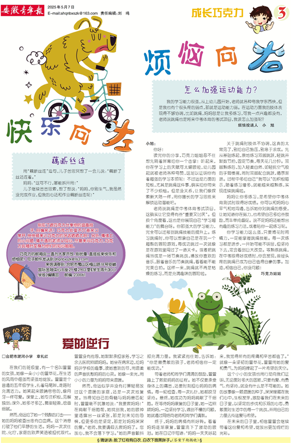 《安徽青年报·学生周刊》励志启智,开阔视野,净化心灵,陶冶情操,参与互动,集新闻性、知识性、趣味性、互动性为一体,是小学生成长的良师益友、参与互动的平台、沟通老师家长的纽带。