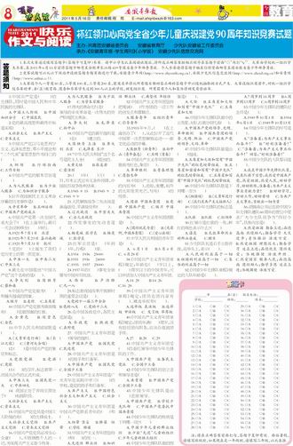 2011快乐作文与阅读杯红领巾心向党全省少年儿童庆祝建党90周年知识竞赛试题