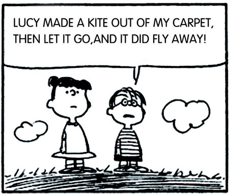 露西用我的毛毯做了个风筝,还让它飞走了!它真的飞走了!