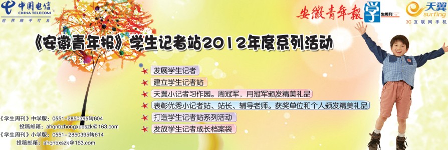 寒假里,淮北市举行了“全市教育系统2012迎新春主持人”大赛,本报驻淮北市人民小学的学生记者们组团到现场采访,报道比赛的精彩瞬间,张金喆便是其中的一个。在接到采访任务的时候,小记者们便紧锣密鼓地开始准备,列采访提纲、准备采访用具、练习采访技巧及动作,一点也不紧张。