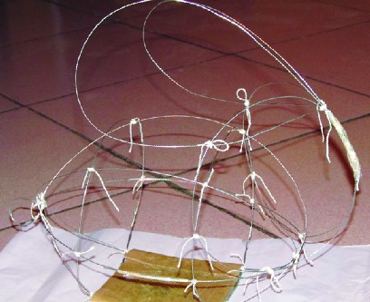 用绳子固定了兔子的框架之后,再用铁丝凹出两个耳朵,一只兔子就成型了。记得用白色胶带给兔子加固,这样你的兔子灯才不怕外面的寒风。