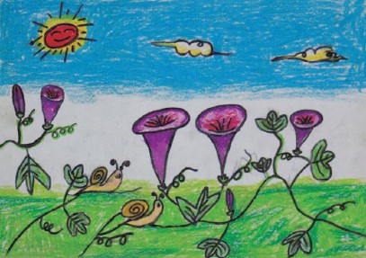 学后多温习,不仅可以加深学到的知识和本领,还会得到新的收获! 嘻哈小蜗牛和大广播 《牵牛花电话》的故事里,我们挑选了两幅可爱的作品,有请登场! 五河县第二实验小学一(1)班 濮(pú)澍(shù) 指导老师 宋莎莎 1.画一个不规则的圆,这可是蜗牛随身携带的大房子。 2.选择圆心,然后一圈一圈往外转,层次感就出来啦! 3.大房子下面就是蜗牛软乎乎的身子啦,可别忘了触角啊! 4.“哈,我看见你们啦!没错,我的眼睛就长在触角上。别看我小,我可是世界上牙齿最多的动物,一共有26000颗左右哦!” 1.画出喇叭一样的半朵花。 2.牵牛花的根部有浅浅的白,喜欢观察的你注意到没有呢? 3.接下来画出牵牛花的叶子。 4.“大广播开播啦!快来收看精彩漫画故事会,下期更精彩!” |