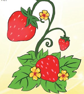 即使输掉一切,也不要输掉微笑! 漫迷大课堂 先来看看叶子吧,你能猜出这是什么水果吗? 原来是草莓!长着美丽的心形,想不讨女孩子欢心也难哦! 瞧,还鲜美红嫩呢,娇滴滴的惹人爱! 草莓:终于让我亮相了,我可不是徒有其表,浑身都散发着浓郁的草莓香!味美多汁,含有丰富的维生素C,还能帮助消化、润喉、清新口气!现在的我,可是蛋糕店的时尚宠儿! 这样的水果大集合也不难画,是你美术课的不错选择哦! 接下来该给瓜果们添上底色喽。