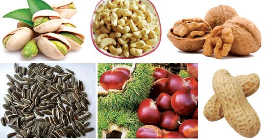 “这些分别是开心果、腰果、核桃、葵花子、板栗、花生!”