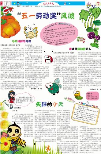 谁才是最勤劳的人 □砀山县实验小学六(8)班 葛龙祥 在大家正争论不休的时候,迎春花姑娘打开化妆盒,先抹上粉底,又喷上香水,清了清嗓子傲慢地说:“我认为我才是‘五一劳动奖’的得主。你们不用争了,怎么也争不过我的。”迎春花姑娘得意地笑了笑。 蝴蝶仙子奇怪地问:“为什么呀?”迎春花姑娘说:“别人叫我迎春花,说明春天来到我最先向春天问好,你们这些懒鬼起得来吗?我每天都起得早早的,忙着打扮、化妆,用自己美丽的容貌去打扮春天,春天有了我才美丽。”说到这,迎春花姑娘骄傲的随风摇曳,不时讥笑别人。听到这些话,迎春花姑娘脚底下的小绿草家族可就急了,生气地说:“你以为你是谁呀!你小时候还不是跟我们一样,有什么分别?如果没有我们夜以继日地给你进行光合作用,为你传输养分,哪有你在这口出狂言,抢我们的功劳。”小绿草家族生气地把头扭过去。 早在一旁听着的蜜蜂妹妹也沉不住气了,急匆匆地大声说:“我整天辛勤地为你们传播花粉,每天我醒得最早又睡得最晚,疲劳过度又闹失眠,整天飞来飞去,翅膀都差点骨折,我比你们谁都合适这个称号。”蜜蜂妹妹愤愤不平。 “大家说的都很有道理。”蝴蝶仙子说。正当蝴蝶仙子左右为难的时候,却发现瓢虫兄弟不见了,原来他们俩正在为郁金香家族治“病”。看见这一幕蝴蝶仙子心中有了答案。她说:“我宣布‘五一劳动奖’颁给瓢虫兄弟。” 众人不解,蝴蝶仙子说:“因为,真正热爱劳动的人是不求名利的,他们只用行动来证明。”顿时,花园里响起了热烈的掌声。 指导老师 蒋 静