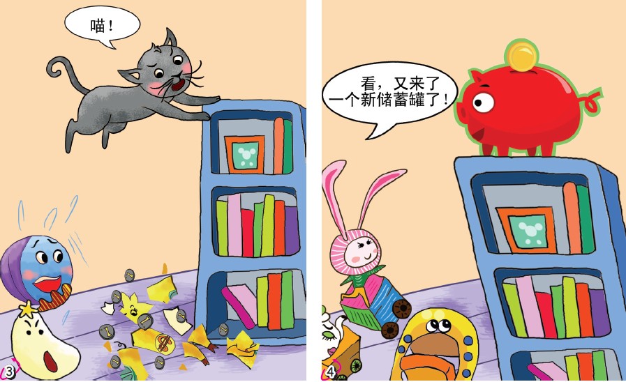 漫画故事会 是的,储蓄罐没有答应玩具们的请求,是什么原因让储蓄罐不愿加入大家呢?它有一个不快乐的童年还是压根就是一个傲慢的主儿,玩具们可吵开了!可是一切都晚了,意外发生了,半路杀出个“程咬金”,储蓄罐被打碎了。代替它的是一个新储蓄罐,它会成为玩具们的好朋友吗? |