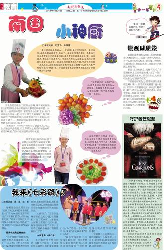 欣赏完赵大厨的作品,接下来要出场的是四(3)班汪文卿,她带来的是能在炎炎夏日消暑的《清凉翡翠》。汪文卿建议大家:“做水果拼盘,最重要的一点就是按顺序做,先雕刻好不容易变色的水果或者蔬菜,接下来就是颜色搭配要有层次。”