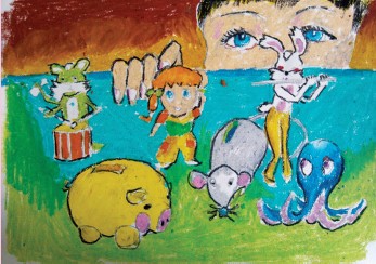 漫画达人馆 1.“嗖——”玩具魔法箱打开了,这里会有哪些有趣的玩具呢? 2.有木鱼闹钟、布娃娃、瓷娃娃,还有一架直升飞机呢…… 3.由于光线的原因,打开的魔法箱盖子的颜色要比里面浅。任何一幅画都是这个原则:同一个物体,越靠近光的地方颜色越浅。 4.你看,布娃娃和木鱼闹钟摇身变成了彩娃娃和绿木鱼了,颜色可真神奇呀! 5.玩具们已经整装待发了,关于它们的故事就交给各位来续写吧! 快看,我的玩具们在开5月音乐会呢!兔儿在吹笛子,狐狸在敲鼓,章鱼和老鼠在教胖猪猪跳交谊舞,它们多么陶醉啊,根本就没发现我在偷看! |