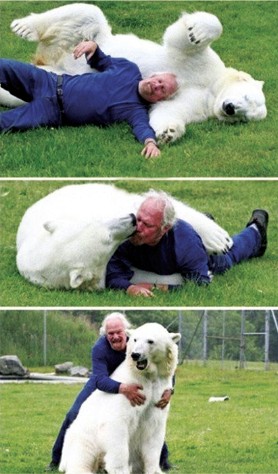 炫NEWS 微言微语 加拿大60岁老人Mark是全世界唯一拥有北极熊作为宠物的人,在熊只有六周的时候就收养了它,一起生活了十几年。太令人羡慕了! 更多精彩内容请关注本报微博 本期导航 |