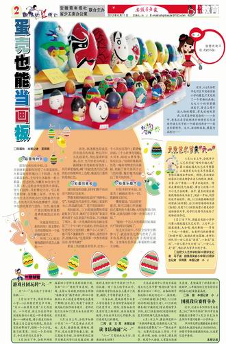 近日,小J在合肥市包河区外国语实验小学的展览厅里发现了一个有趣的画面:大大小小的彩蛋摆满桌子,蛋壳上有卡通人物的图像,有美丽的风景画,还有各种创意涂鸦……一打听,原来这是学校刚进行的特色文化活动外语文化节的一个精彩的部分——创意彩蛋制作。这不,活动刚结束,展览仍在进行——