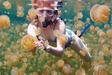想象一下,这个夏天,你会在清凉的游泳池里度过,不仅如此,你会有很多玩具——水母,它们飘在你的周围,和你玩老鹰捉小鸡的游戏。你不用担心它们会蜇(zhē)疼你,它们绝对友善,而且这种浑身金色的小家伙,身上的刺软极了,你根本感觉不到!如果你有兴趣,它会现身在帕劳,不过至今还没有人在那里居住。