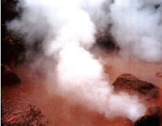 与别处温泉不同,这儿有着血红色的湖水,还有无处不在的硫磺味。众所周知,日本处在地震带上,有温泉实在不足为奇,但是别府的另类还是让人们感到恐惧,称它是“别府地狱”。可是“地狱”并不可怕,反而吸引了无数游客:来到这里先欣赏一番奇景,再泡上一个硫磺澡,要知道血红色的泉水里有很多铁元素呢!