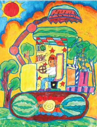 神奇画笔 向城市美容师问好(淮北市东山路学校四年级 王常骁 指导老师 陈红梅) 幸福生活(铜陵市东方红小学二(3)班 方正远 指导老师 杨 克) 我的西瓜挖土机(铜陵县实验小学 丁嘉恒 指导老师 李小霞) |