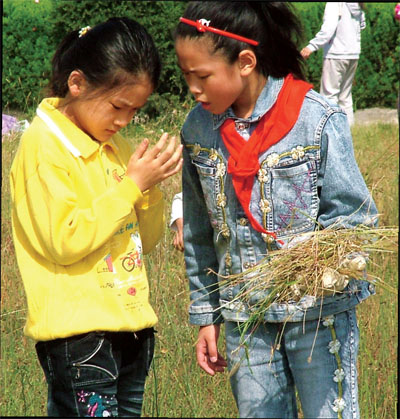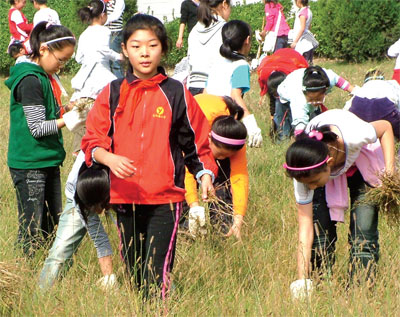 每个组都任命了组长、送草员和收草员。顾名思义,组长是调度大家工作的,送草员是收集大家拔除的杂草,然后送到收草员那里集中堆放。