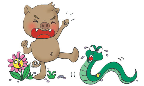 不能再接近了,我离野猪只有十多步。潜伏下来后,我只看到野猪那全神贯注的样子,顺着它的视线,有可恶的树丛遮着,什么也看不到。 |