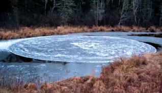 结冰的河面,一块破裂的冰块,在流水的作用下打起了转。最后,这块有棱有角的冰块竟然成了一个正圆形!这不是人工作品,是真实而罕见的冰圈。