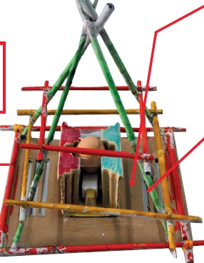 聪明的你们一定知道三角形的稳定性,有了三角形的护栏,再加上底板上的瓦楞纸和泡沫组合成的夹子,鸡蛋就等于被悬在空中,就算是从高处坠落,也伤不到它。