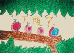 听,虫子们在唱歌 快听,好像有什么在唱歌?如果你有这样的好奇心,灵璧县西关小学的同学们会告诉你,那是虫子们的歌声!他们找到了小“歌唱家们”,还画下了它们:瓢虫姐妹在树叶上晒太阳;蚂蚁姐弟在草丛里和伙伴们捉迷藏;还有可爱的小蜗牛们排队要去看电影呢……