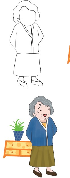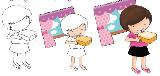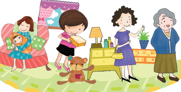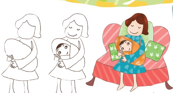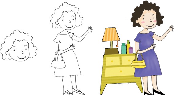 漫画大课堂 婴儿标签:襁褓+稀疏的头发 小女孩标签:发型+服装色彩 阿姨标签:发型+服装+高跟鞋+手提包