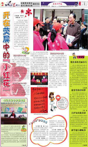 4月9日,蚌埠市红旗三路小学以“花开满园 感受春天”为主题,在安徽财经大学青年志愿者协会大学生的参与下,开展了一场趣味活动。同学们在哥哥姐姐们的指导下,制作了一朵朵美丽的纸花。