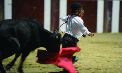 这里说的男孩女孩,其实是一群大人。因为得了“侏(zhū)儒(rú)症”,他们保留着孩子般的面孔和身材,永远也长不大。听说,他们是老天特别安排的天使。虽然个子小,做很多事情都不方便,但他们依然努力、快乐地生活着。你瞧,他们来了! 斗牛记