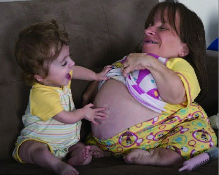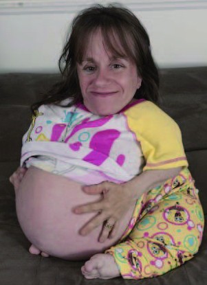 这些勇敢的男孩来自墨西哥一个马戏团。他们正在哥伦比亚上演一场 “侏儒斗牛”。比起那些高个子斗牛勇士们,他们显得太小了。不过,依然不影响这场表演的精彩。 袖珍妈妈 这个挺着大肚子的妈妈叫斯泰西·赫拉尔德,今年35岁,身高却只有0.7米左右。医生曾告诉她怀孕可能会要了她的命。但是这位伟大的天使妈妈,努力地创造奇迹,生了两个可爱的女儿,第三个孩子也即将出生了,了不起吧! |