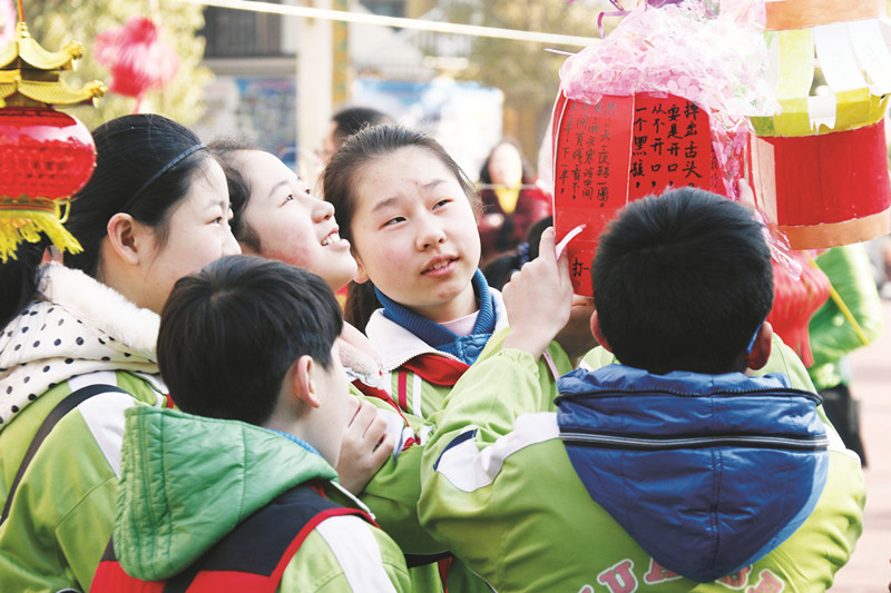 六(9)班 杨 锦:以前过元宵节,就是跟爸爸妈妈一起吃顿汤圆而已;现在才知道原来传统节日也可以形式多样且有意义。