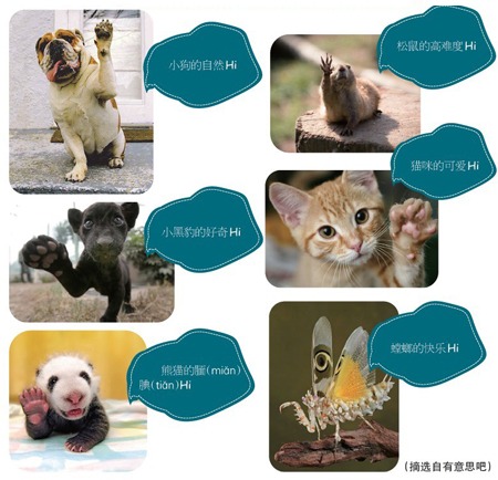 新年到,好热闹,狗也笑,猫也闹。新一年,新气象。地球上的每个生物都迫不及待地高兴起来。你瞧,这些快乐的动物朋友也来凑热闹,举起小手,一起来说Hi!
