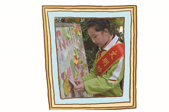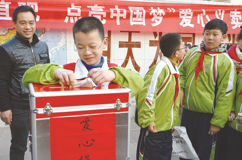 杨 锦:我们雏鹰志愿者服务队还经常在校园举行爱心义卖活动。我们把看过的书籍、玩过的玩具带到学校,让它们重新发挥价值。我们所赚的钱,作为“爱心基金”存进学校“爱心储蓄银行”,帮助困难学生和弱势群体。在服务队,我体会到了什么是快乐:快乐就是帮助那些需要帮助的人们,让世界充满爱心。