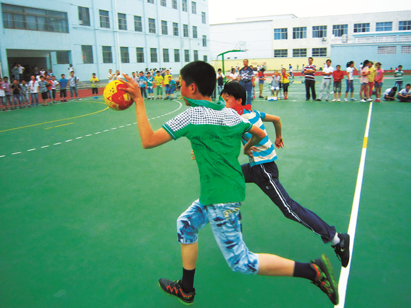 众所周知,办特色不易,尤其是在农村小学。经过研究,秦栏小学决心重点推进体育项目,并于2012年起着力将手球打造成校园特色。确立好目标,秦栏小学自主编写了校本教材,聘请了专业教练,还重点培养了一批有实力的手球教师,手球活动开展得风生水起。老校不老,小小手球可以让其活力焕发。手球也让同学们走出了教室,在广阔的球场上找到了别样的乐趣。