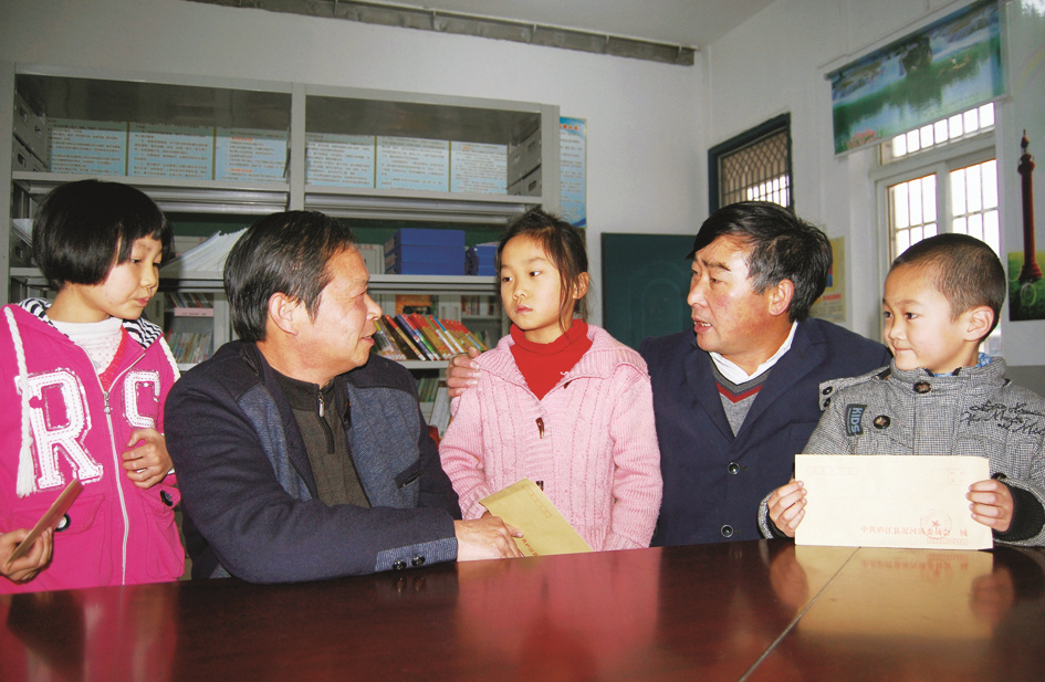 留守娃拿到了助学金 3月21日,爱心单位为庐江县瓦洋小学留守娃们送来了助学金。近年来,庐江县泥河镇人大、关工委与教育单位齐抓共管,关爱行动不断。2015年,各方关爱资金达16万多元。 徐梅生 本报记者 郑晓娣