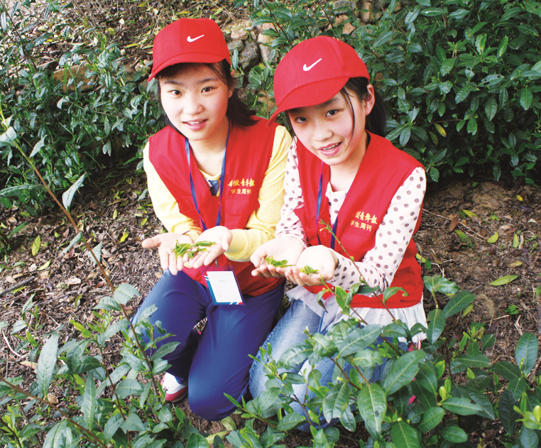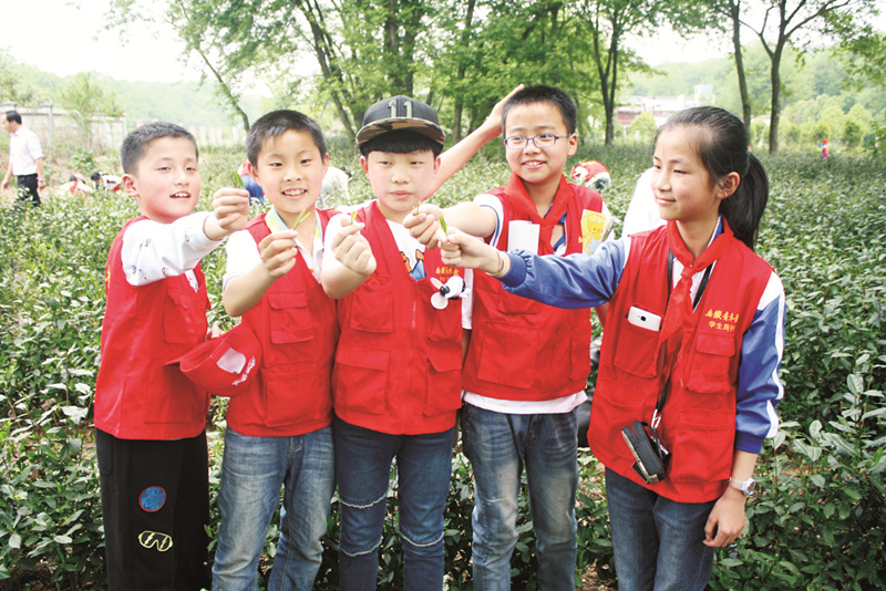 为了让小记者们体会采茶的过程,赵厂长带小记者们去茶园采茶,不过采茶叶也有标准,一般采一芽一叶和一芽两叶,小记者们也从中体会到劳动的艰辛和幸福生活的来之不易。