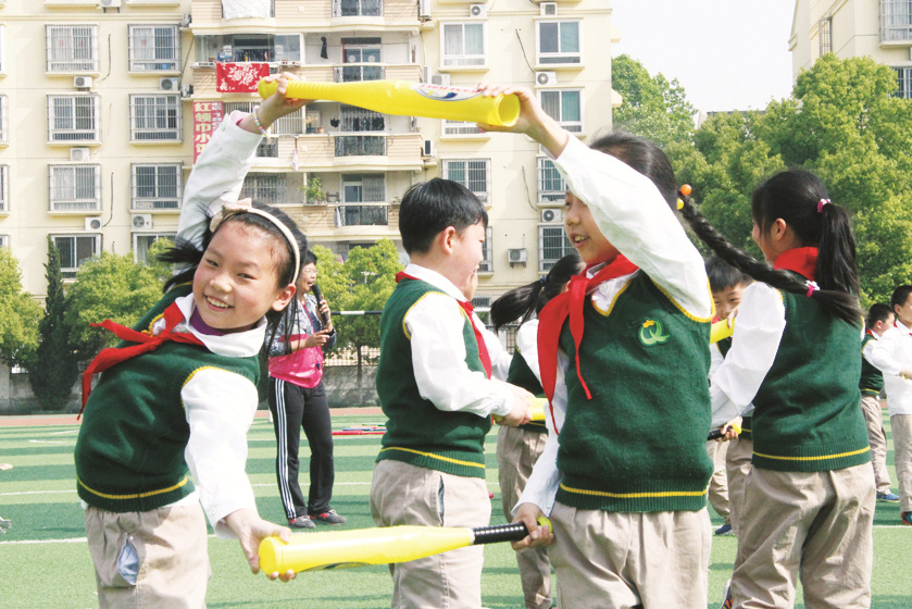 “绕着操场跑两圈!”这句话再也不是体育老师的口头禅,除了单纯的跑步,潜校体育老师梁春蕾的法宝已经有了十几种——短跑、跨栏接力;一级方程式;8分钟耐力跑;十字交叉跳;速度阶梯;投掷少儿标枪;越过障碍掷准等。这些不同种类的体育游戏项目,有个共同的名字——趣味田径。田径还能玩出趣味?别心急,听学校老师王大勇慢慢为你道出妙处。“趣味田径包括了田径项目,但是增加了趣味性和安全性。比如一般的跨栏适合成人,而趣味田径里的跨栏器材用的材质比较软,而且色泽亮丽。就算你撞到栏杆,也不会受伤。再比如,投掷类的标枪,重量适合小学生,五颜六色自然不用说。最特别的是标枪前头有个类似‘哨子’的装置,在你投出少儿标枪的时候,速度越快,标枪发出的‘赞赏声’越大……”五颜六色的体育器材、挑战自我的难度系数以及别出心裁的赞赏等,光听着描述,新闻官都想跃跃欲试了!